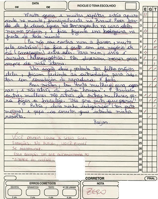 OLHA A REDAÇÃO DO CABRA DA PESTE. NADA HOMOFÓBICO